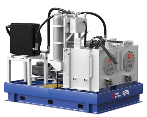 Bewegung. Die Hydraulikstation verwendet eine Kolbenpumpe mit variabler Verdrängung, die stoppt