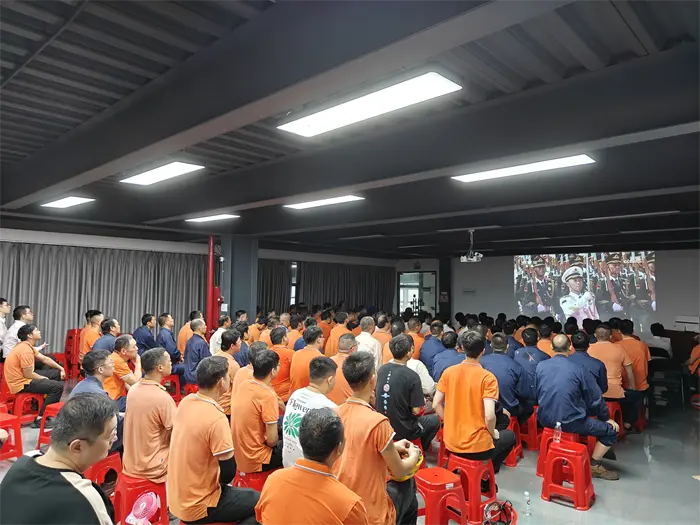 Der 3. September war ein Tag von großer Bedeutung für das gesamte chinesische Volk. An diesem besonderen Tag führten Fu Binghuang, Vorsitzender der Fujian Quangong Machinery Co., Ltd, und Fu Xinyuan, General Manager, alle Mitarbeiter in den Konferenzraum des Unternehmens, um sich die große Militärparade anzusehen und diesen aufregenden historischen Moment mitzuerleben.