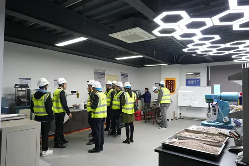 Das Besuchsteam ging in das F & E-Labor für F & E-Materiale in Qgong und war von den hochpräzisen Instrumenten und geschäftigen wissenschaftlichen Forschungsszenen angezogen. Dies ist nicht nur ein "Inkubator" für neue Baumaterialien, sondern führt auch Kernthemen wie die Optimierung des Verhältnisses von festem Abfall und den Tests der Ziegelkompressionsfestigkeit durch.