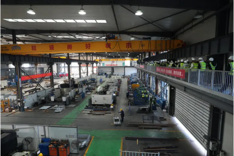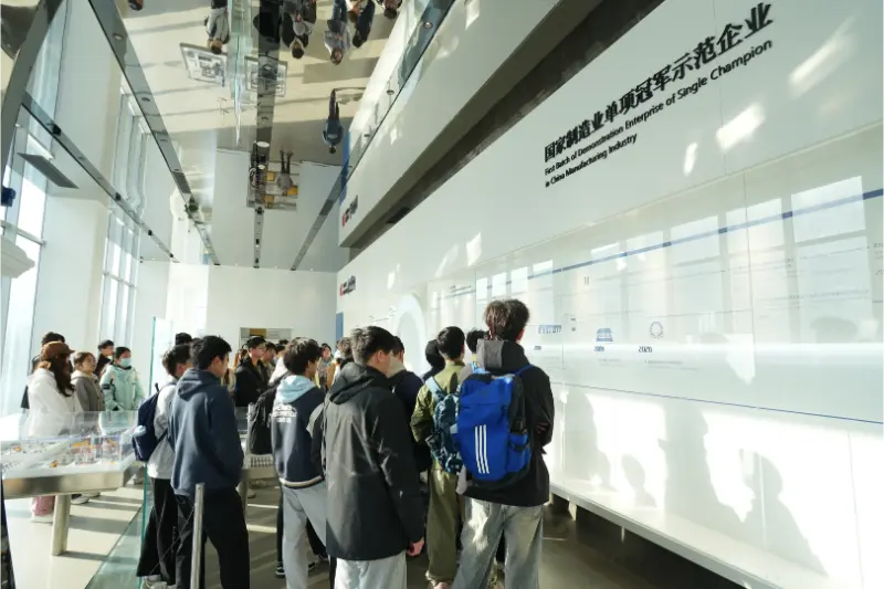 Anschließend besuchten die Lehrer und Schüler die Bearbeitungswerkstatt und betraten die vorderste Front der intelligenten Fertigung. In der Werkstatt arbeiteten CNC-Bearbeitungszentren und automatisierte Montagelinien mit hoher Geschwindigkeit, Roboterarme führten verschiedene Vorgänge präzise aus und das digitale Produktionssystem zeigte den Produktionsfortschritt und Qualitätsüberwachungsdaten in Echtzeit an, was den synergetischen Effekt einer „grünen Fabrik“ und einer „intelligenten Werkstatt“ demonstrierte. Technische Experten des Unternehmens führten die Lehrer und Schüler durch den gesamten Prozess von der Rohmaterialverarbeitung bis zur Gerätemontage und legten dabei den Schwerpunkt auf die Erläuterung der Anwendung von Schlüsseltechnologien wie der Verbindung von CNC-Geräten und der präzisen Erfassung des Produktionsstatus. Die Studenten arbeiteten aktiv mit den technischen Experten zusammen, diskutierten Themen wie Prozessoptimierung und Gerätewartungstechniken und schufen so eine starke Lernatmosphäre vor Ort.