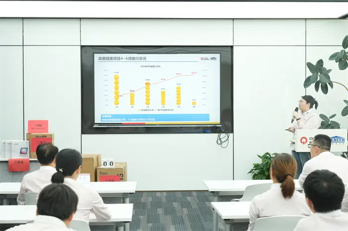 Im Rahmen der Veranstaltung präsentierte das Lean Office einen ausführlichen Bericht über die von April bis Juni eingereichten Verbesserungsvorschläge. Statistiken zeigen, dass die kumulierten Einsparungen von April bis Juni 365.600 Yuan erreichten, wobei die meisten Vorschläge auf den Stufen 5 und 6 bewertet wurden und die Teilnehmerzahl hoch war. Durch diese Vorschläge konnte das Unternehmen erhebliche Arbeitsstunden und Kosten einsparen. Dies ist das Ergebnis der gemeinsamen Anstrengungen aller unserer Mitarbeiter und ein Spiegelbild des kontinuierlichen Strebens von QGM Co., Ltd. nach Exzellenz.