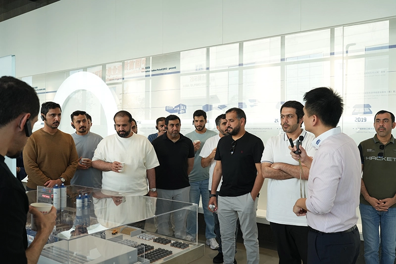 Im Kontrollzentrum der Intelligent Equipment Cloud Service Platform beobachtete die Delegation ein intelligentes Betriebs- und Wartungsszenario, das demonstrierte, wie Geräte aus der Ferne überwacht werden können. Als Kerninnovation von Quanzhou Machinery integriert diese Plattform modernste Technologien wie Cloud Computing, Big Data und künstliche Intelligenz. Es kann Echtzeit-Betriebsdaten von über 1.000 intelligenten Geräteeinheiten weltweit sammeln und ermöglicht so umfassende Lebenszyklusmanagementfunktionen, einschließlich Online-Überwachung, Fern-Upgrades, Fehlervorhersage und -diagnose sowie Bewertung des Gerätezustands. Die Delegationsmitglieder erkundigten sich nach den Anwendungsfällen der Plattform und der Service-Reaktionsgeschwindigkeit im Nahen Osten und lobten ihre effizienten und kostengünstigen Betriebs- und Wartungslösungen für Kunden in Übersee. Sie waren davon überzeugt, dass diese Technologie die Nachfrage des Infrastruktursektors der VAE nach intelligenter und effizienter Ausrüstung perfekt erfüllt.