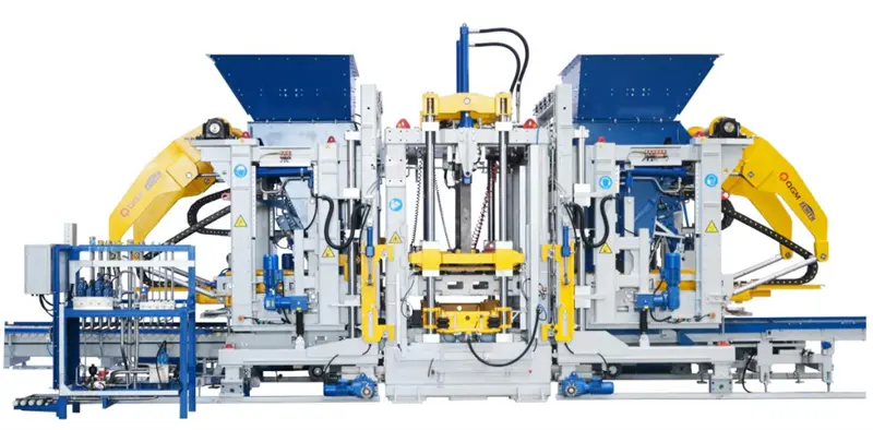 Der Hauptrahmen verfügt über die fortschrittlichste zusammengebaute Rahmenstruktur und kann optional mit Funktionen zum Öffnen und Schließen der seitlichen Form, zum Ziehen des Kerns (Platte) und zum Einsetzen von Styroporplatten ausgestattet werden. Das Hydrauliksystem ist mit einem Drucksensor ausgestattet, um eine präzise Steuerung zu erreichen und einen stabilen Druck zu gewährleisten. Der Materialverteilungswagen wird hydraulisch angetrieben und kann die Form schnell und effektiv füllen; Gleichzeitig ist es mit einem Lasererkennungsgerät ausgestattet, um den Materialstand im Materialwagen genau zu überwachen. Durch die schnelle Verriegelung des Druckkopfes und der elektrischen Formeinlegevorrichtung in Kombination mit dem Formwechselausleger kann die Form einfach und schnell ausgetauscht werden, und die pneumatische Formspannvorrichtung kann den besten Vibrationseffekt gewährleisten und die Lebensdauer der Form verlängern. Die Geräte sind außerdem mit einem intelligenten Cloud-Service-System mit Funktionen wie Online-Überwachung, Remote-Upgrade, Remote-Fehlervorhersage und Selbstdiagnose sowie Remote-Service ausgestattet.