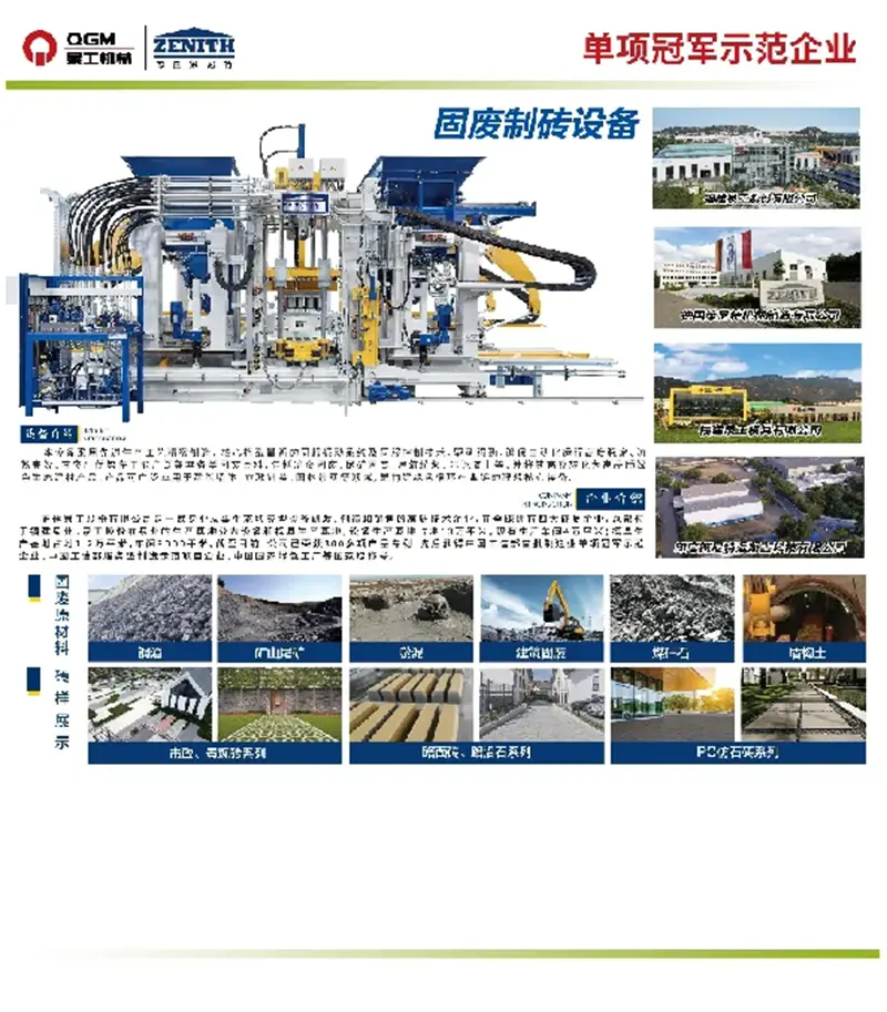 Es wurde unabhängig von Fujian QGM Co., Ltd. entwickelt und zeichnet sich durch Intelligenz, einen hohen Grad an Automatisierung, vollständige Nutzung der Digitalisierung, Informationssysteme und den umfassenden Einsatz modernster High-Tech-Technologien aus. Es verfügt über eine breite Produktpalette und hervorragende Qualität. Es können große Mengen fester Abfälle hergestellt werden, um Bausteine, vorgefertigte Kommunal- und Wasserbauprodukte sowie Landschaftsbetonprodukte herzustellen, die in großem Umfang im Städtebau und Schwammstadtbau eingesetzt werden können.